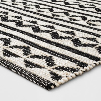 Create a perfect focal point in your indoor space with this Geometric Woven Accent Rug from Project 62™. The handmade accent rug features a black geometric pattern on a white backdrop for a charming look, making the perfect addition to your indoor space. Plus, the flat-pile construction makes it ideal for high-traffic areas. The neutral tone allows for a seamless coordination with almost any existing decor, making it a versatile accent piece.