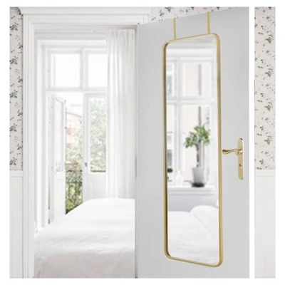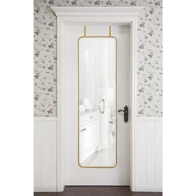 Add simple reflective style to your bathroom or bedroom door with this Over-the-Door Mirror Metal from Project 62™. The over-the-door mirror brings space-saving style into your home. It features a slim rectangular design with rounded edges for a clean modern look, along with a reflective flat surface in the center to create the illusion of extra space. The full-length mirror comes with a sturdy metal frame for lasting use. Plus, it’s quick and easy to install.