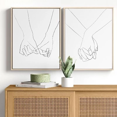 Liven up your living spaces with the (Set of 2) 16″ x 20″ Hands Framed Canvas from Project 62™. These pieces of art can be hung on an empty patch of wall to decorate the space. They feature hand designs on a white background that can fit into most decor styles. This pair makes for a great housewarming gift, too.