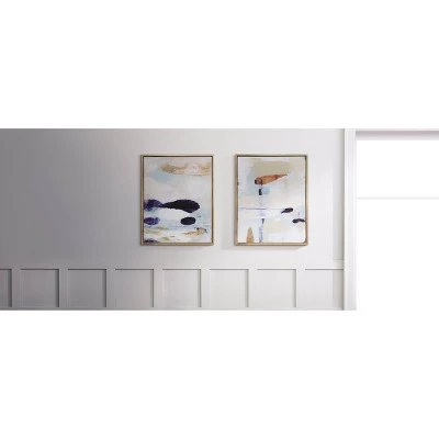 This abstract framed canvas wall art pair by Project 62™ brings modern sophistication to your interior. Strokes of navy and turquoise provide hints of color throughout the soothing beige, brown, and cream tones of the diptych. A must-have addition to any room, this framed wall art adds a personality without overwhelming the decor in the room. This decorative pair is encased in a sleek frame with a pine finish that offers clean style. The neutral art pieces seamlessly blend with any decor, making for a chic and easy addition to your space.