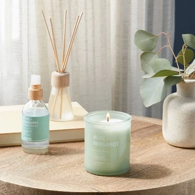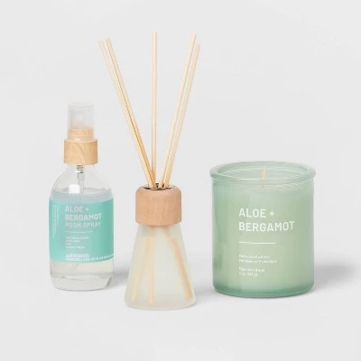 Elevate your everyday life with the 3pk Diffuser Candle Room Spray Gift Set Aloe Bergamot from Project 62™. Whether it’s your living room, bedroom, or workspace, this set effortlessly transforms your environment into a haven of relaxation and balance. This Project 62™ 3pk Diffuser Candle Room Spray Gift Set Aloe Bergamot diffuser’s sleek and modern aesthetics seamlessly complement any decor style, making it a perfect addition to your home or office.